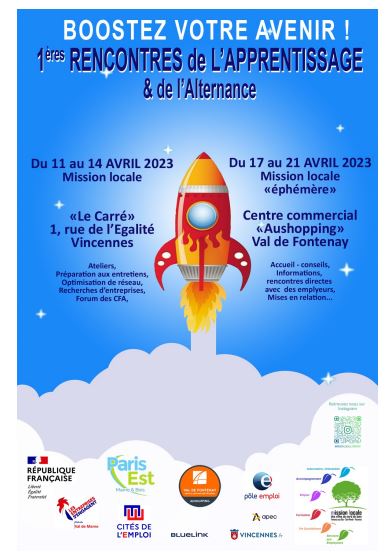 1ères rencontres de l'Apprentissage & de l'Alternance du 11 au 21 avril 2023 organisées par la mission locale des villes du Bord du Bois