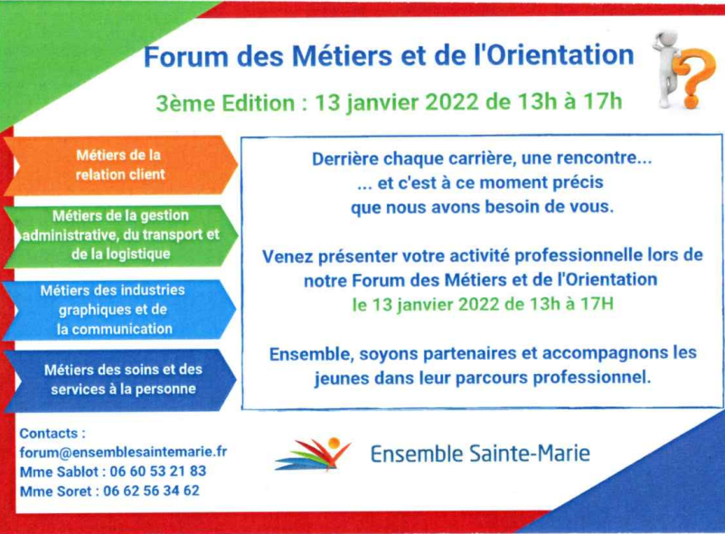 Forum des Métiers et de l'Orientation de l'Emsemble Sainte-Marie à Joinville-le-Pont le 13 Janvier 2022