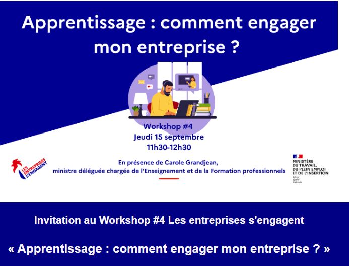 La Communauté 'Les entreprises s’engagent' vous convie au 4ème workshop dédié à l'apprentissage le jeudi 15 septembre, de 11h30 à 12h30